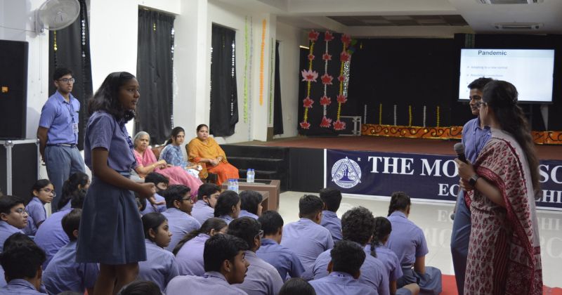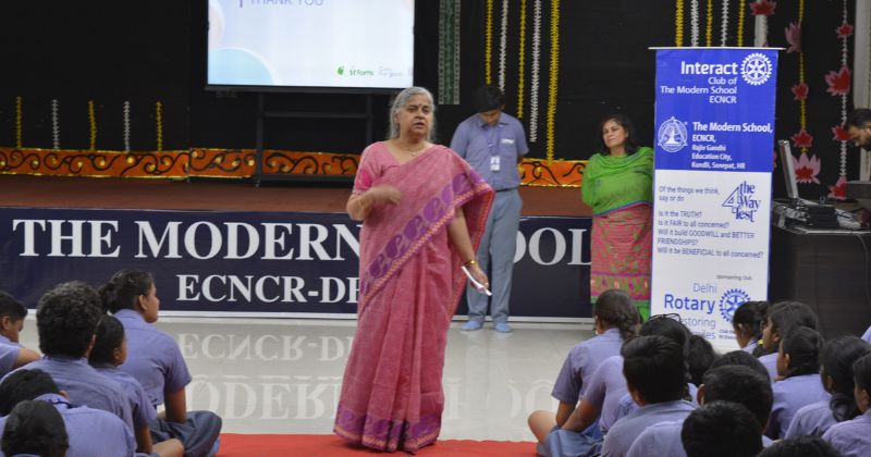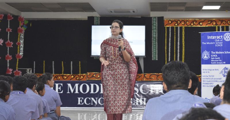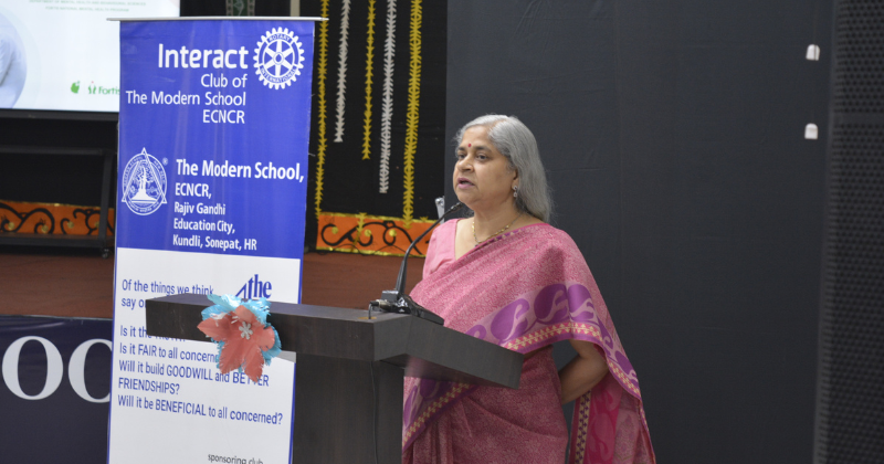 The Interact Club of The Modern School, ECNCR organised a session on the role of peers in our lives to combat mental stress titled 'Peer to Pillar' for the students of S1 to S7 on May 16, 2023. The guest speakers of the session, Ms Aakriti Gupta, a Psychologist and art based Therapist and Ms Varisha Kamal, a Counselling Psychologist at Department of Mental Health and Behavioral Sciences at Fortis Healthcare were welcomed and felicitated by Ms. Meera Malhotra , Coordinator, Managed Modern Schools , the Principal , Mr. Rajiv Shrivastav and the Headmistress, Ms. Rimpy Verma.