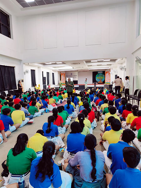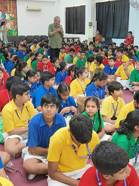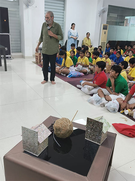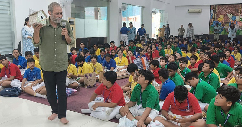 Mr. Rakesh Khatri, known as the Nest Man of India, a naturalist and filmmaker who has spent three decades spreading awareness on building a sustainable future was the guest speaker of the day. He is passionate about saving birds, conserving water and understanding climate change. Mr. Khatri, a green activist who has built over 2.5 lakh nests to shelter birds made the students learn how to create nests for birds using various everyday use items and things.