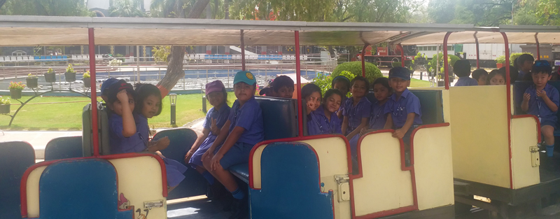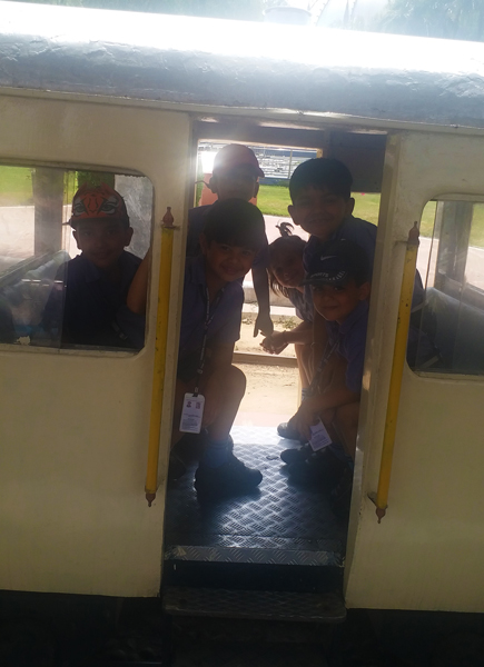 As the toy train crossed various stations, students sitting in the coaches also passed through a tunnel. The merry ride gave them a feeling of travelling in the beautiful hills of India. Students were enthralled to see the exhibits of wagons, coaches and engines displayed in the exhibition hall.