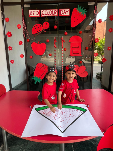 Every month, we celebrate Color Day, which this month featured the color red. Our Pre-primary department organised 'Red Color Day' on April 16, 2025 to introduce children to the fascinating world of colors. Red, the color of blood and fire, represents love, sensitivity, joy, strength, leadership, and resolve. It represents action, confidence, and courage. The young tots looked gorgeous in their red clothes. The color red made the kids feel bright, vibrant, and enthusiastic. The day began with crimson everywhere. Children enjoyed color-themed crafts, poems, and games. They all like red foods and beverages, including strawberries, apples, pomegranates, and roohafza.