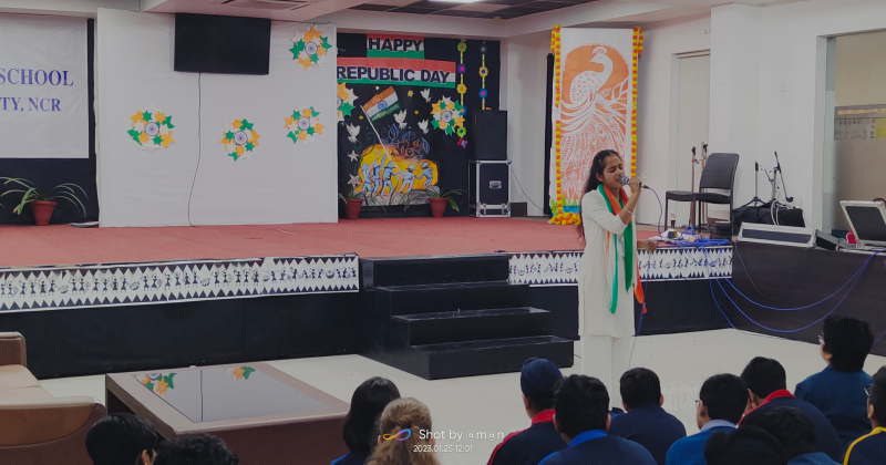 Students of classes Nur to S3 of Himachal House conducted a special assembly on the occasion of 74th Republic Day on January 25, 2023. The students took pride in glorifying and celebrating the spirit of unity. A PowerPoint Presentation on the significance of Republic Day and how it came into being was presented. The rich culture and diversity of our country was showcased through various dance performances by the students that left the audience spellbound. The poignant patriotic songs reminded everyone about the sacrifices of our brave soldiers. A discussion cum question answer session about Indian culture, history and significance of this day was also held.