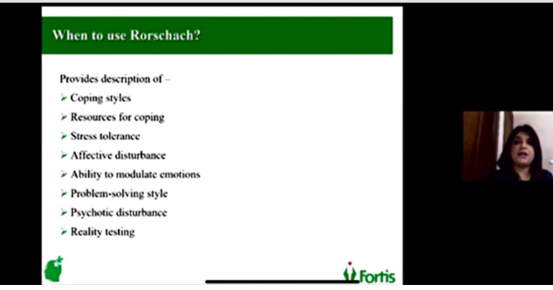 The speaker also discussed about the complexity of interpreting the test as it requires a wealth of knowledge concerning personality dynamics generally as well as considerable experience with the Rorschach method specifically. The students were also made familiar with the protocols that need to followed and about the utility of the test.