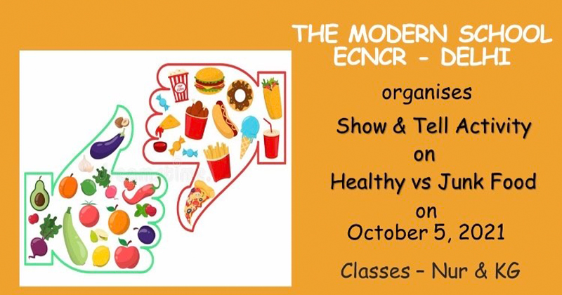 Students of classes Nursery-P2 zealously participated in a 'Show-N-Tell Activity' held on October 5,2021. The activity took place through a live zoom session and was conducted to strengthen the verbal skills and confidence of the students, as well as to foster the art of public speaking in the young modernites.The students of Classes Nur-KG spoke about 'Healthy and Junk food' whereas students of classes P1-P2 expressed their views on 'My Healthy Plate'. The young modernites talked about the importance of various nutrients, eating right as well as the need to avoid eating junk food and sugary drinks. They also explained how healthy food makes one fit, strong and active whereas junk food makes one weak, fat and unhealthy, using different props.