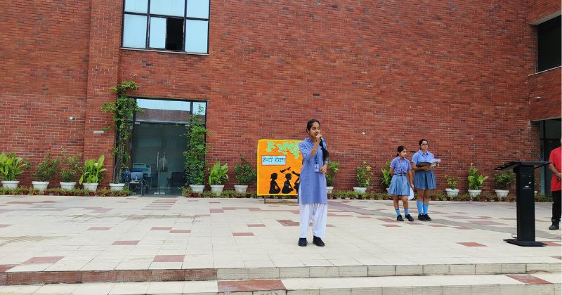 पर छात्रों ने कविता, गीत, सुविचार तथा हिंदी की महत्तापर भाषण दिया। इस समारोह में छात्रों को हिंदी