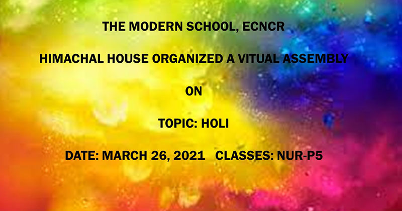 The festival of colours, Holi was celebrated through a virtual assembly organised by Himachal House for the students of classes Nur-P5 on March 26, 2021.