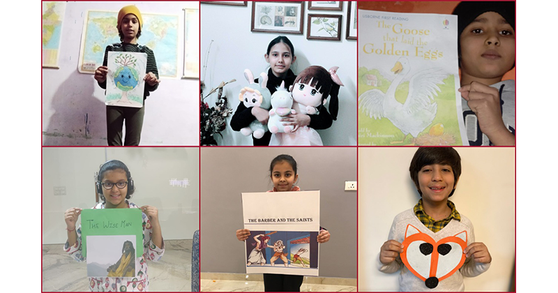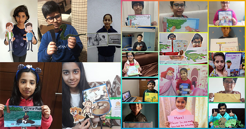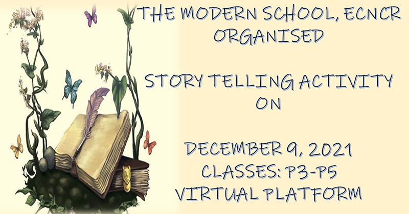 Storytelling is a universal and traditional art form that has featured strongly in Indian culture as an effective communication tool. It is often used as a medium to ingrain values, improving reading skills and opening the minds of children to worlds beyond imagination. A Story Telling Activity with Props was conducted for the students of classes P3- P5 on December 9, 2021 through a virtual platform.Â