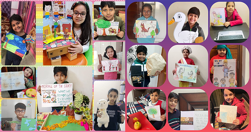 The stories narrated by the students were moral based that enhanced their listening and speaking skills. Students appropriately narrated the story with proper voice modulation, body language and eloquent expression.To captivate the attention, the little narrators used props like puppets, toys, drawings and even used items that they made using best out of waste.