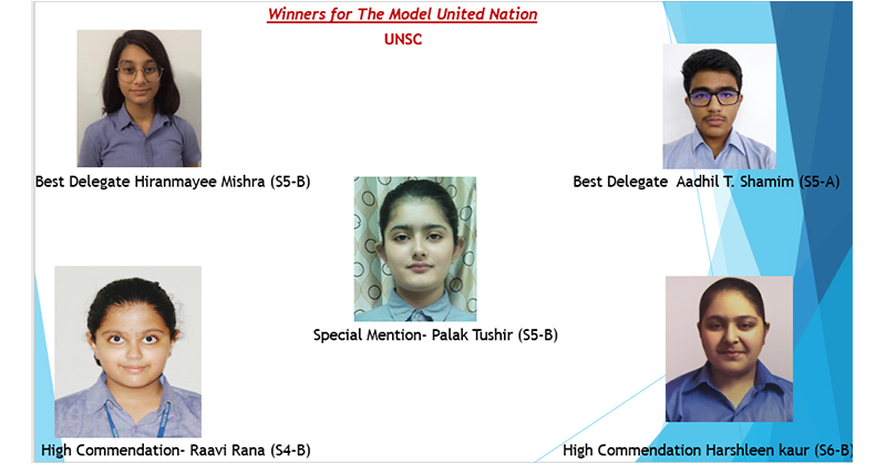 • Best Delegate- Hiranmayee Mishra (S5-B) and Aadhil T. Shamim (S5-A)