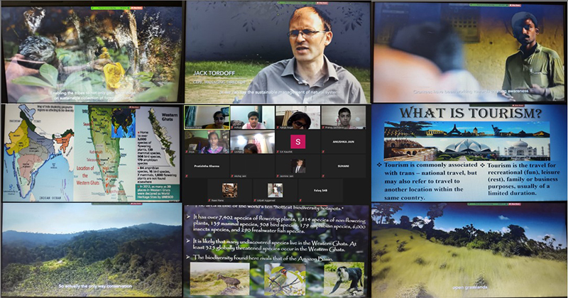 On June 05, 2021, the students of class S4 attended a virtual excursion to Western Ghats, one of the most bio-diverse regions in India as well as the world. The excursion started with the analysis of the importance of tourism and travelling, whereby the students became aware of the various types and benefits of tourism. Through a PPT and excursion video, the students came to know about the flora and fauna of the Western Ghats as well as the various issues within the region due to increase in population and unsustainable development. On the occasion of World Environment Day, through the excursion, the students felt inspired, enthusiastic and determined about making the world a better place to live in and preserve it for the future generations. The session ended with a quiz on The Western Ghats in which students participated with great zeal and performed fairly well.