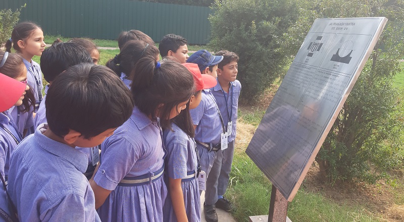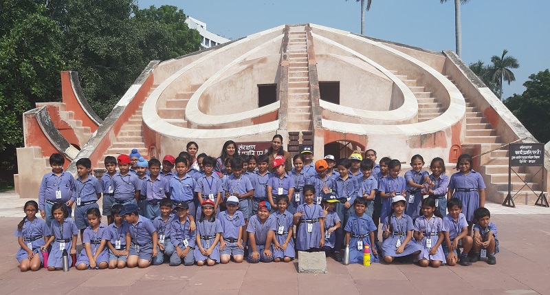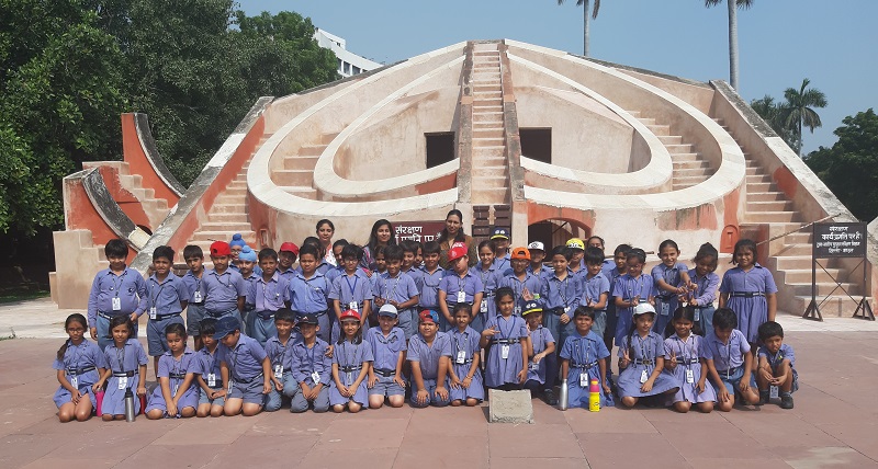 An educational excursion to Jantar Mantar was organized for class P3 on October 12, 2019. There were 49 students who were accompanied by 3 teachers on the excursion. It was a fascinating and adventurous experience for the students. On arriving, the students were explained that the term ‘Jantar Mantar’ literally meant instruments for measuring the harmony of the heavens. Furthermore, the name Jantar Mantar was derived from the two words Jantar and yantra meaning instrument and mantra, which indicates calculation. Students learned that Jantar Mantar, an astronomical observatory with masonry instruments, was built in1724 by Raja Jai Singh 11 of Jaipur. There were different instruments like Samrat Yantra, Jayaprakash Yanta, Rama Yantra and Misra Yantra found there. The instruments inside the observatory were constructed and placed intelligently so that the observers could note the positions of the celestial bodies with their naked eyes. Students were found exploring the monuments with awe and admiration. It was an unforgettable experience which apart from being intellectually rewarding, gave the students a glimpse of the country’s proud history.