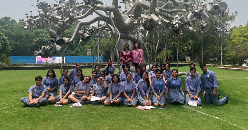 The excursion concluded with a group photograph taken at the iconic Banyan Tree sculpture by acclaimed contemporary artist Subodh Gupta. This striking installation, composed of stainless steel and incorporating metal buckets as leaves, is a recent addition to the gallery’s lawns and left a lasting impression on the students.
