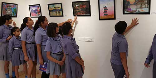 The Modern School, ECNCR organized a visit for the students who have keen interest in the field of art and participated in the competition ‘Glimpse of Japan’ on October 30, 2017. A group of 10 students were accompanied by Ms. Mini, the art teacher of the school. The selected noteworthy art work of some students of The Modern School was displayed in the art gallery of the University. It was a great motivation for the students to witness their work showcased with other spectacular pieces of art. They received immense appreciation from the spectators present at the exhibition and came back with a lot of experience gained from the other exhibits displayed in the art gallery. The students were enriched with the treasure trove of compliments received during their visit for their exemplary art work.