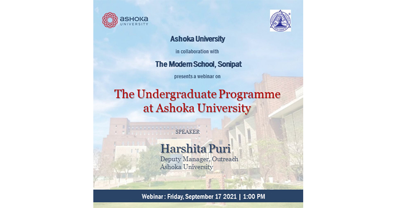 The Modern School, ECNCR in collaboration with Ashoka University conducted a webinar on September 17, 2021 to give a comprehensive idea to the students of class S6 and S7 about the undergraduate programmes at the university. Through this webinar on 'Liberal Education', the speakers, Ms. Harshita Puri and Mr. Shaurya Cheema, Deputy Manager of Outreach Operations for Ashoka University aimed to make the learners understand the meaning of liberal education, its Indian context and relevance in the real world.