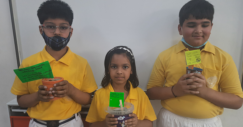 A 'Tree plantation' activity was also organised for the students of classes P3 to P5 on April 20, 2022 during the House Meeting period as it is a great way to develop a bond between children and environment. The students understood that each one of them play a vital role in protecting and conserving the environment. The celebration of Earth Day rekindled emotive concerns and instigated the youngsters to save, love and respect Mother Nature with all their heart and soul.