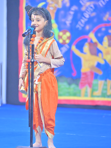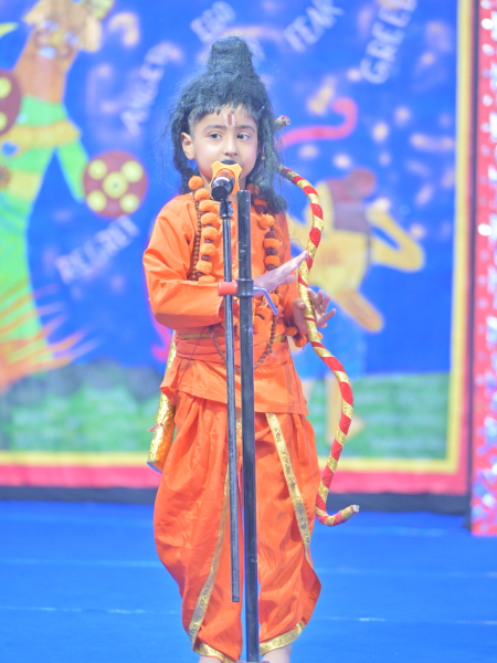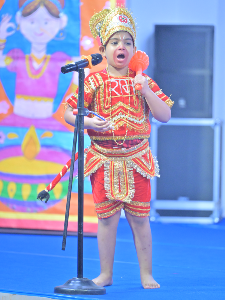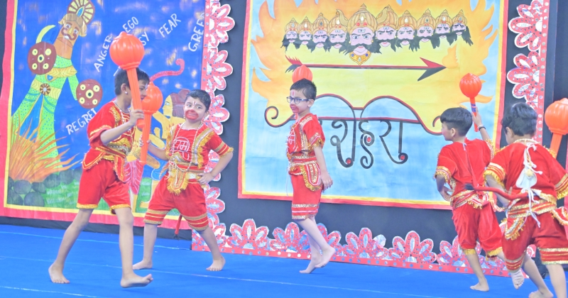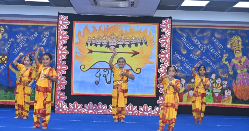 The festival of Dussehra was celebrated with great enthusiasm and joy in Class P1 on September 18, 2025. The programme commenced with a warm welcome dance that set a festive and vibrant tone for the event. This was followed by an engaging skit, beautifully enacted by the students, depicting the victory of good over evil. The skit highlighted the significance of Dussehra and conveyed an inspiring message of truth and righteousness.