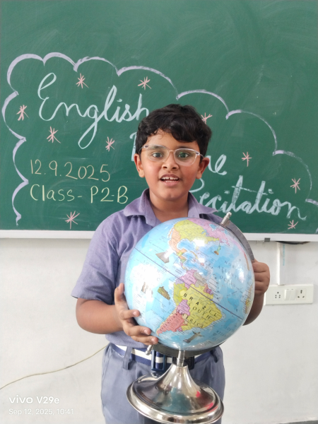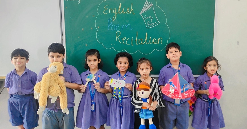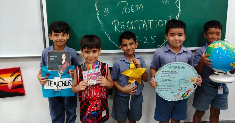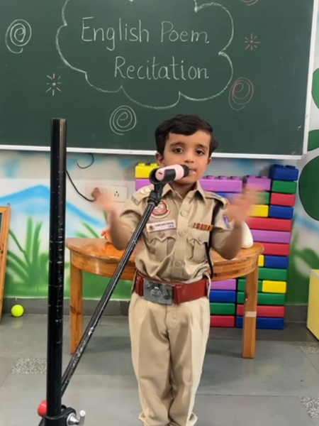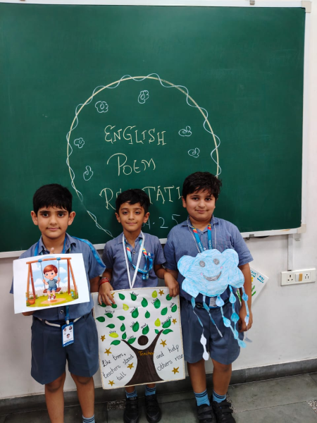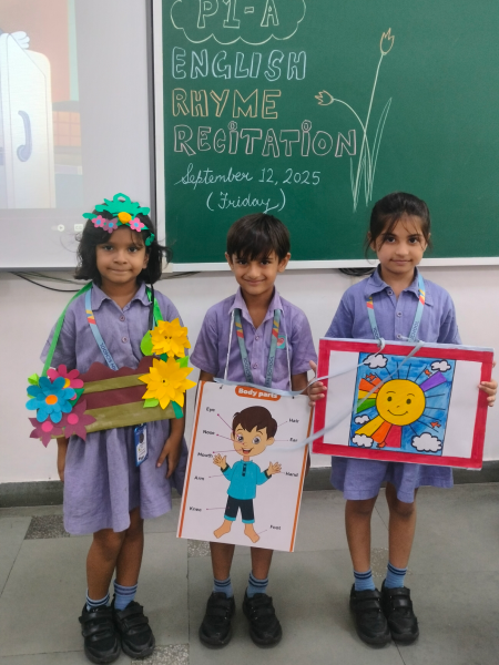 "The most exquisite, striking, and powerful means of expressing ideas is poetry." On September 12, 2025, an English poem recitation activity was planned for Pre:Nursery through P2 classes in an effort to foster a love of poetry and improve pupils' recitation abilities. By delivering poems with assurance, precise pronunciation, suitable voice modulation, and emotive interpretation, the young students demonstrated their talent. In order to add charm and make their recitation more interesting and accessible, many students also used imaginative props. Teachers expressed gratitude and encouragement for everyone's efforts at the end of the event, urging them to keep discovering the delights of poetry.