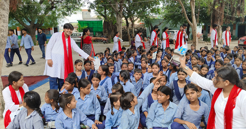 Following the play, sanitary pads were distributed among the girl students, accompanied by guidance on safe usage, changing frequency, and methods of proper disposal. An interactive session further encouraged students to ask questions and clarify doubts regarding menstrual health.