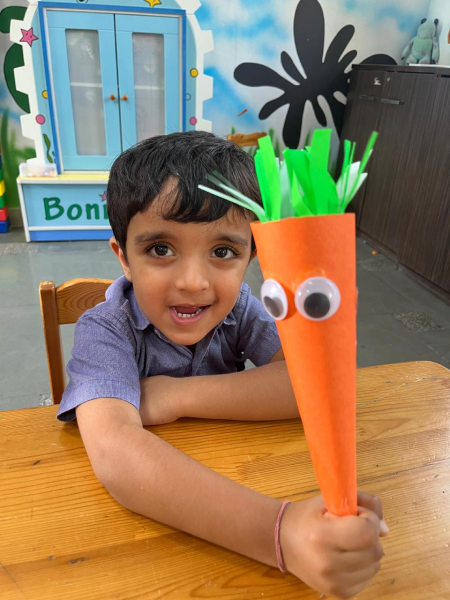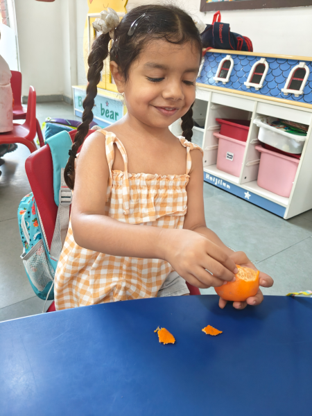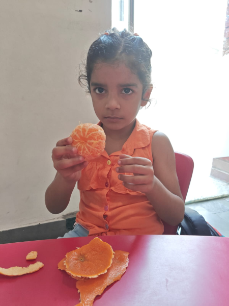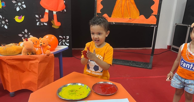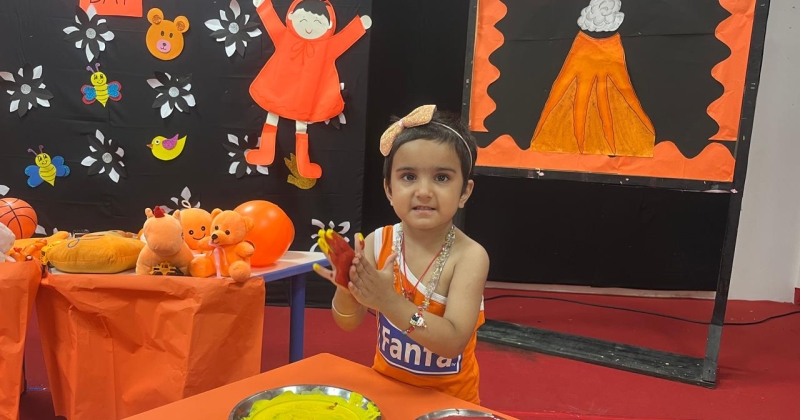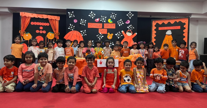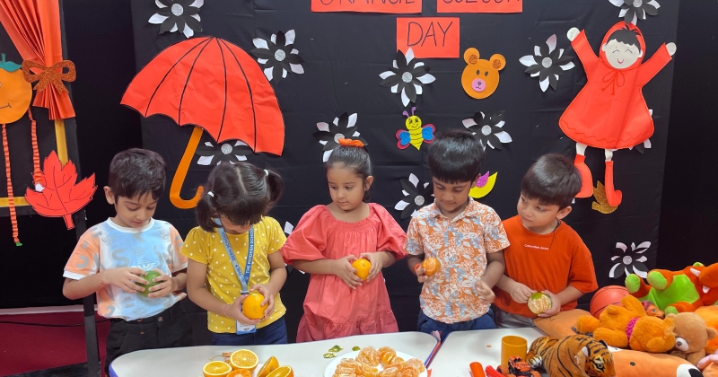 The Foundational Stage 1 students enthusiastically celebrated Orange Color Day on September 17, 2025. Wearing various orange outfits and holding orange-colored items, the kids looked lively. Several enjoyable activities were held to make the day interesting and educational. Using oranges and lemons, the students learned about the health advantages of vitamin C and how it keeps the body in good condition. Peeling oranges and experimenting with their texture, flavor, and aroma was enjoyable to them. Later on, they were given cool orange tang. The lava experiment was shown to spark interest and enthusiasm. Children took part in making lovely crafts with an orange motif. In addition to being a happy occasion, the celebration taught students the value of creativity, colors, and a nutritious diet in a fun way.