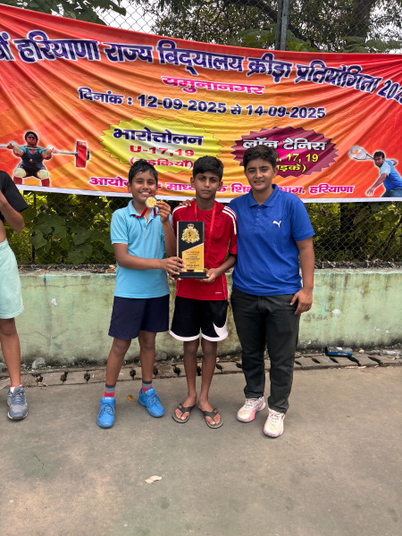 Our school's U-14 and U-17 Tennis teams showcased exceptional skills and sportsmanship at the SGFI State Tournament, held at Yamunanagar from September 12-14, 2025. Both teams secured an impressive 3rd position in their respective categories. Tapasvi Khatri from the U-14 team has earned a spot in the prestigious U-14 National Tennis Tournament adding another feather in the cap.